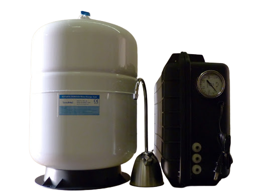 原水から前処理フィルターを通し、浸透膜に内臓ポンプで圧力をかけ不純物のみを排水し、浄水された綺麗なピュアウォーターのみを圧力タンクに溜め込み使用します。最近のボトルドウォーターも逆浸透膜装置を使用していますが、ボトルタンクには環境ホルモン材が使用されている事で近年問題視されています。水は作り立てが美味しく安全という証拠かもしれません。日本の水道法順守項目は50項目ほどで、アメリカでは260項目ほどあり、アメリカの家庭で普及しているのが逆浸透膜装置です。日本では水質の安心安全は一般の方まで理解していないのが現状です。